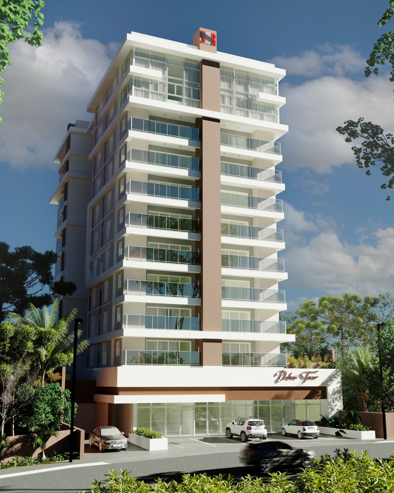 O edifício será constituído de 1 (um) corpo arquitetônico com 12 pavimentos, sendo 01 subsolo. O edifício dispõe de 04 salas comerciais, 34 apartamentos, 58 vagas de estacionamento de uso residencial e 06 vagas de estacionamento comercial públicas.